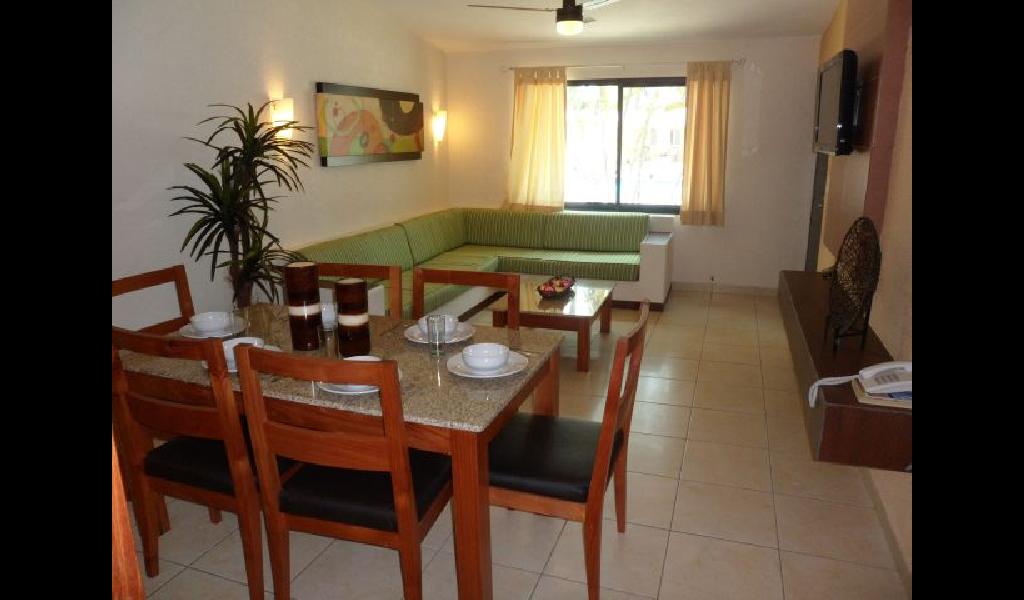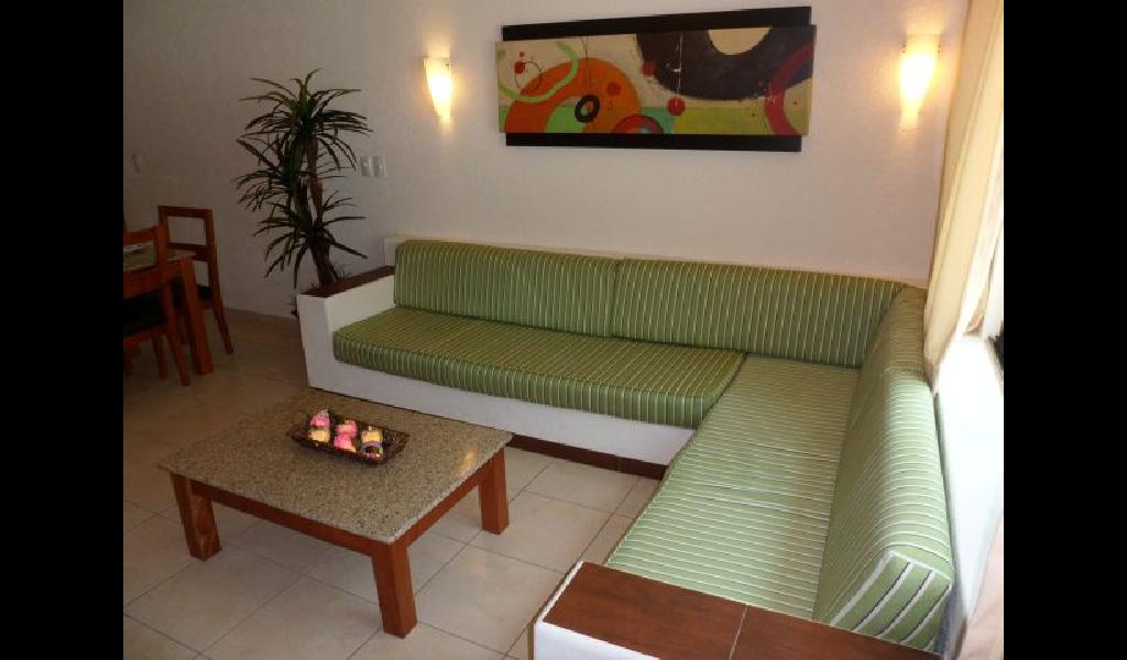 JR. SUIT tiene vista al mar, es una recamara king size, sala comedor, cocineta semi equipada, ba駉, aire acondicionado, TV cable y tel閒ono.