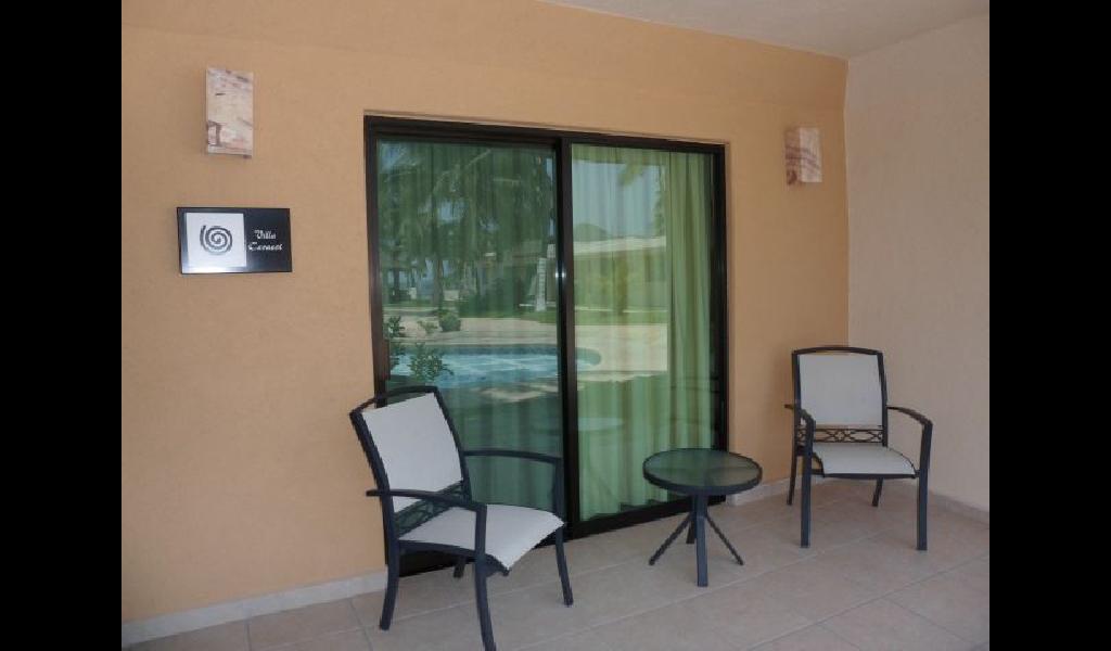 VILLAS cuentan con 1 recamara king size con terraza, 1 recamara con 2 camas individuales, cocina integral (cafetera, microondas,parrilla, campana, refrigerador, bateria de cocina, loza) sala y comedor, ba駉 con amenidades, Secadora para cabello, TV LCD con cable, tel閒ono y aire acondicionado en toda la villa.